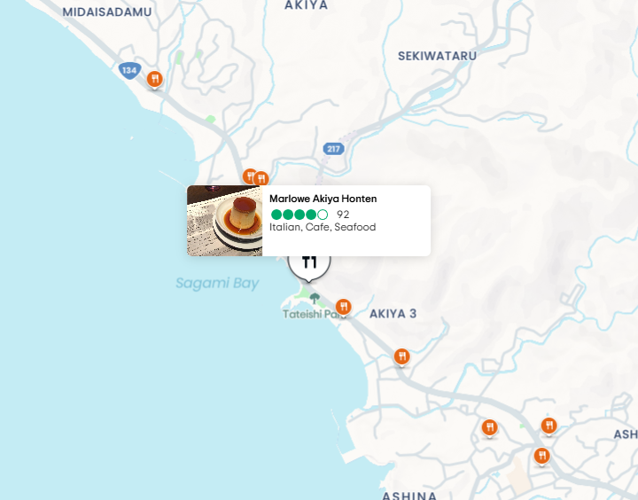 MARLOWE는 가나가와 현에 여러 지점이 있으며, 도쿄에도 지점이 있습니다. 넷플릭스 미친맛집에서 소개된 지점은 바다도시인 아키야에 위치해있습니다.
